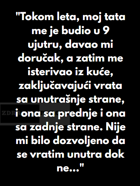 - Tek kasnije sam shvatio da je tata zapravo samo pokušavao da održi svoje svakodnevne rutine, koje nisu uključivale aktivno učestvovanje u mom životu. Iako mi je govorio da ne treba da provedem dan u kući, nikada nije postavio jasne granice, niti je objašnjavao zašto je važno da izađem napolje. Njegov način vođenja brige o meni bio je indirektan, i delovao je kao da je izgradnja distance bila deo njegove strategije.