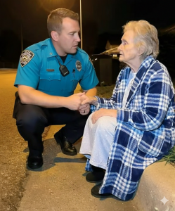 Priča počinje u tri sata ujutro, kada policija prima poziv od građanina koji prijavljuje da njegova susjeda sjedi vani na pločniku. Sam poziv je već čudan, ali ono što će se dogoditi kasnije je još bizarnije. Dva policajca brzo stižu na mjesto događaja i ugledaju staricu koja mirno sjedi ispred svog doma. Njena nepomičnost i mirnoća odmah izazivaju nelagodu, jer na prvi pogled djeluje kao da je nešto ozbiljno u pitanju.