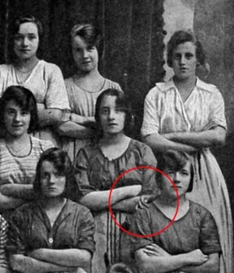 - Belfast Live prenosi priču jedne od čitateljki, Lynda, koja je bila prva koja je primijetila sablasni detalj na ovoj fotografiji. Naime, gledajući snimku, uočila je nešto što nije bilo odmah očigledno već na prvi pogled. Na desnoj strani srednjeg reda, gdje se nalazi jedna od djevojaka, jasnu pozornost privlači ruka koja je postavljena na njezino rame. Ruka koja, po svemu sudeći, nije pripadala nijednoj od prisutnih djevojaka na slici. Ovo nije bila samo sjenka, već pravi oblik ruke koja je nesumnjivo bila pozicionirana na njenom ramenu. Iako se može pretpostaviti da bi nešto poput svjetlosnih refleksija ili greške u optici moglo uzrokovati nesavršenosti na slici, oblik ove ruke previše je jasan i konkretan da bi to bilo slučajno.