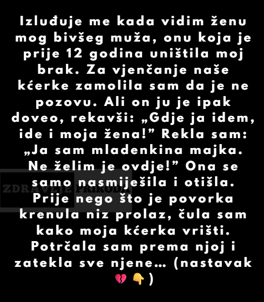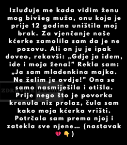 Vjenčanje djeteta, koje bi trebalo biti trenutak radosti i slavljenja ljubavi, može postati i izvor napetosti, posebno kada prošlost nosi težinu neizrečenih emocija. Ova priča prikazuje majku koja se suočila s teškom odlukom i postavila granicu, ne želeći da nova supruga njenog bivšeg partnera prisustvuje vjenčanju njihove kćerke. No, stvari su ubrzo izmakle kontroli, što je dovelo do dubljih nesuglasica i neugodnih trenutaka unutar obitelji.