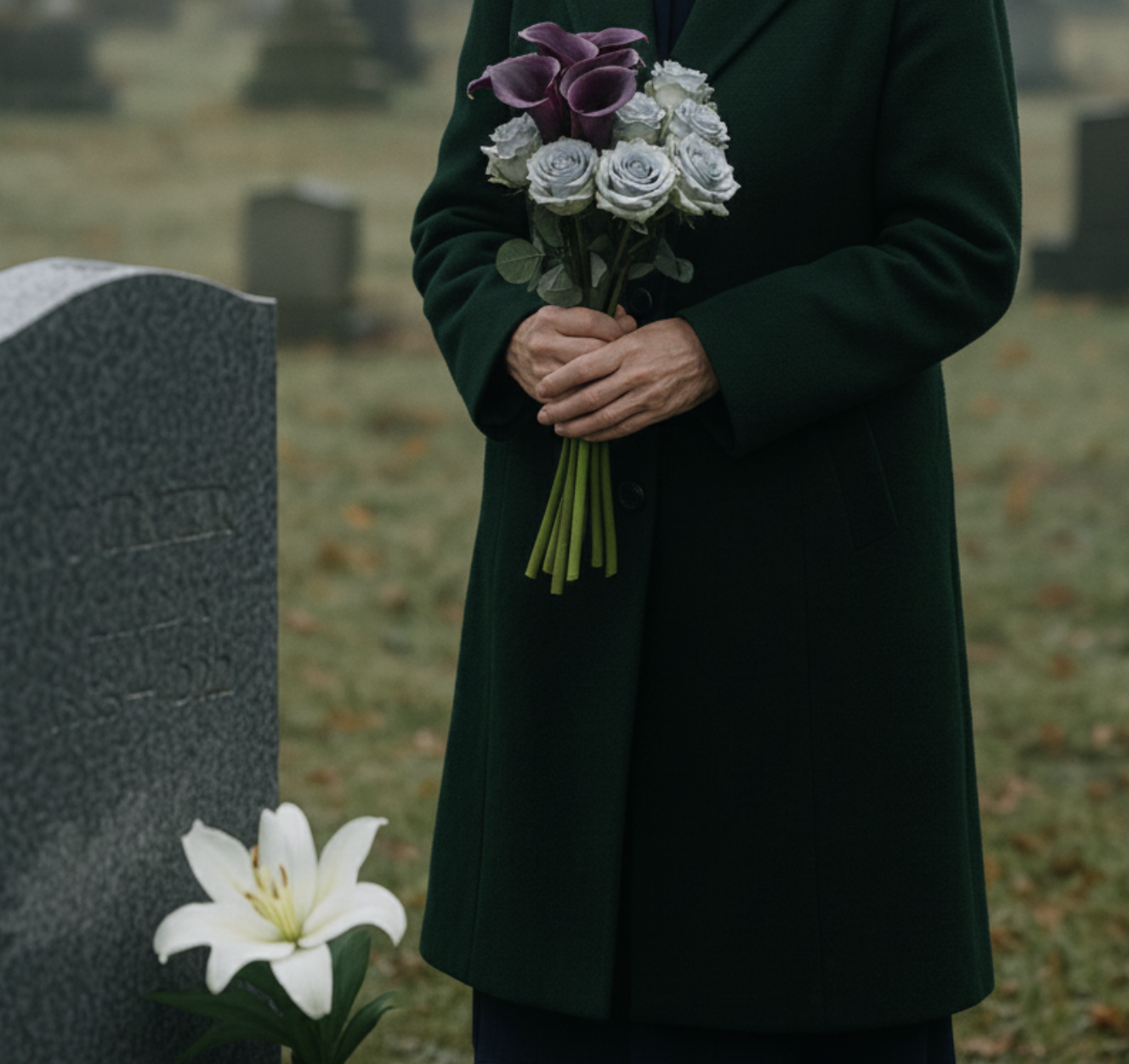 - Kada se približila mjestu gdje je počivao njen muž, naglo je zastala. Nije odmah shvatila šta je to što se promijenilo. Stanični miris zemlje bio je isti, krstovi oko nje izgledali su jednako kao prethodnog vikenda. Ali onda je vidjela — neko je već ostavio cvijeće na grobu. Na hladnom mramoru nalazio se buket ljiljana. Ne bilo kakvih — potpuno identičnih onima koje je ona donosila: istog oblika, iste boje, vezanih tankom zlatnom vrpcom kakvu je njen muž volio da koristi kada bi joj poklanjao cvijeće za godišnjice. Stabljike su bile vlažne, kao da su ih tek isprskali vodom, a latice savršeno otvorene, što je značilo da nisu tamo stajale dugo.