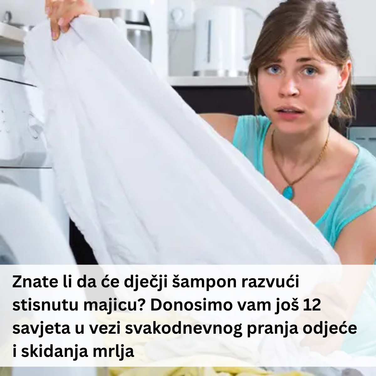 - Znate li da će dječji šampon razvući stisnutu majicu? Ako se omiljeni komad odjeće smanji nakon pranja, dovoljno ga je potopiti u toplu vodu pomiješanu s dječjim šamponom i ostaviti neko vrijeme. Vlakna će omekšati, a majica će se moći pažljivo razvući do prvobitne veličine. Ovo je samo jedan od trikova koji spašavaju odjeću od odlaska u kantu. Donosi se još 12 savjeta vezanih uz svakodnevno pranje i skidanje mrlja, a svaki od njih pokazuje kako se uz malo mašte i upornosti mogu postići odlični rezultati. Primjerice, upotreba sirćeta za uklanjanje tvrdokornih mrlja ili praška za pecivo za neutralizaciju neugodnih mirisa.